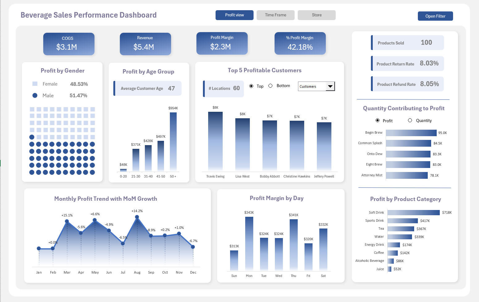 7. Formatted the dashboard with consistent color themes and optimized performance for 18,000+ customer records.Here are my key takeaways: