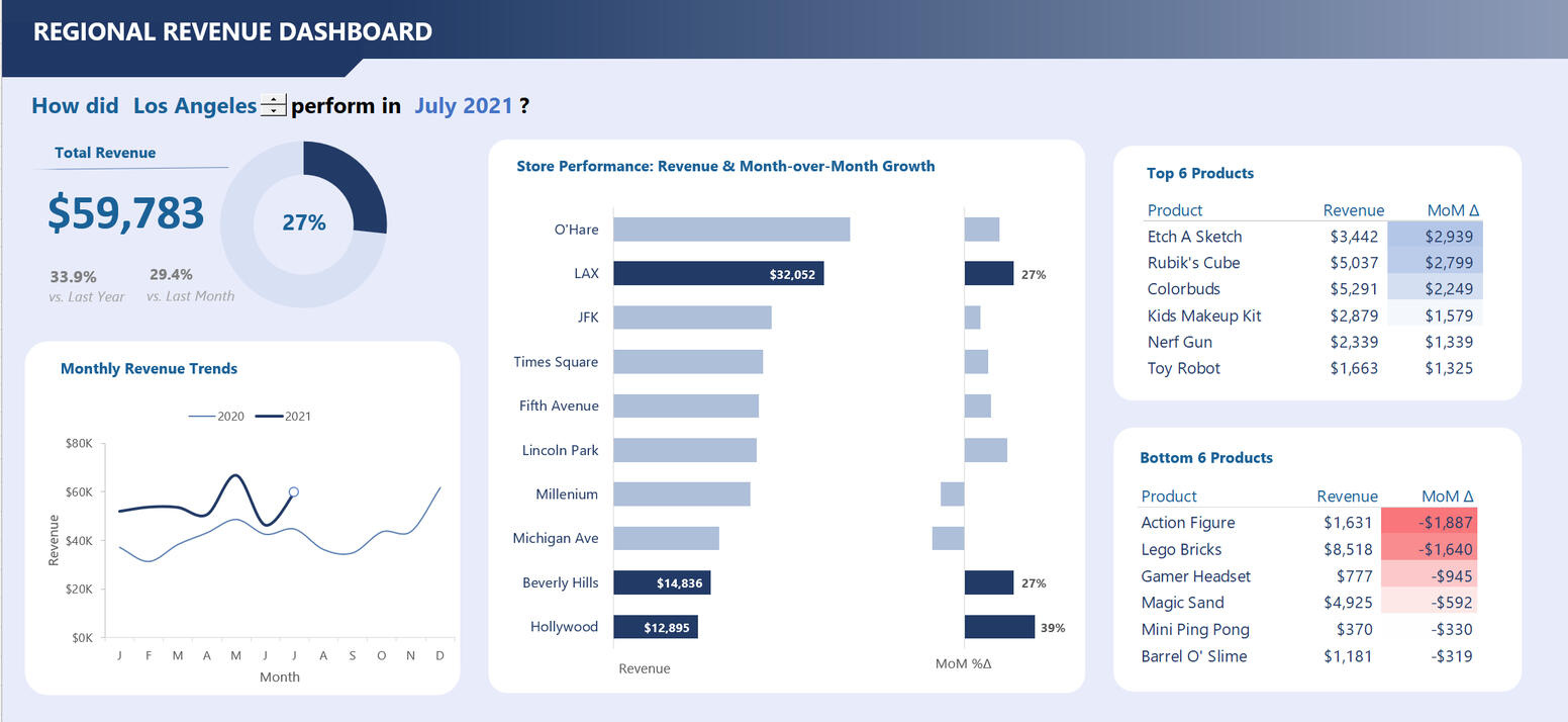 Regional revenue analytics dashboard for multi-location retail chain using Excel to drive strategic decision-making