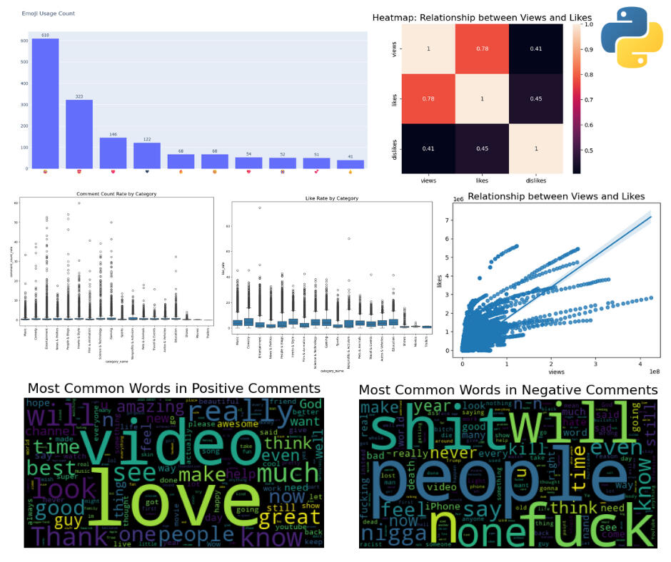 Data analysis project examining YouTube engagement patterns, comment sentiment, emoji usage, and channel metrics with interactive visualizations using Python, Pandas, and Plotly.