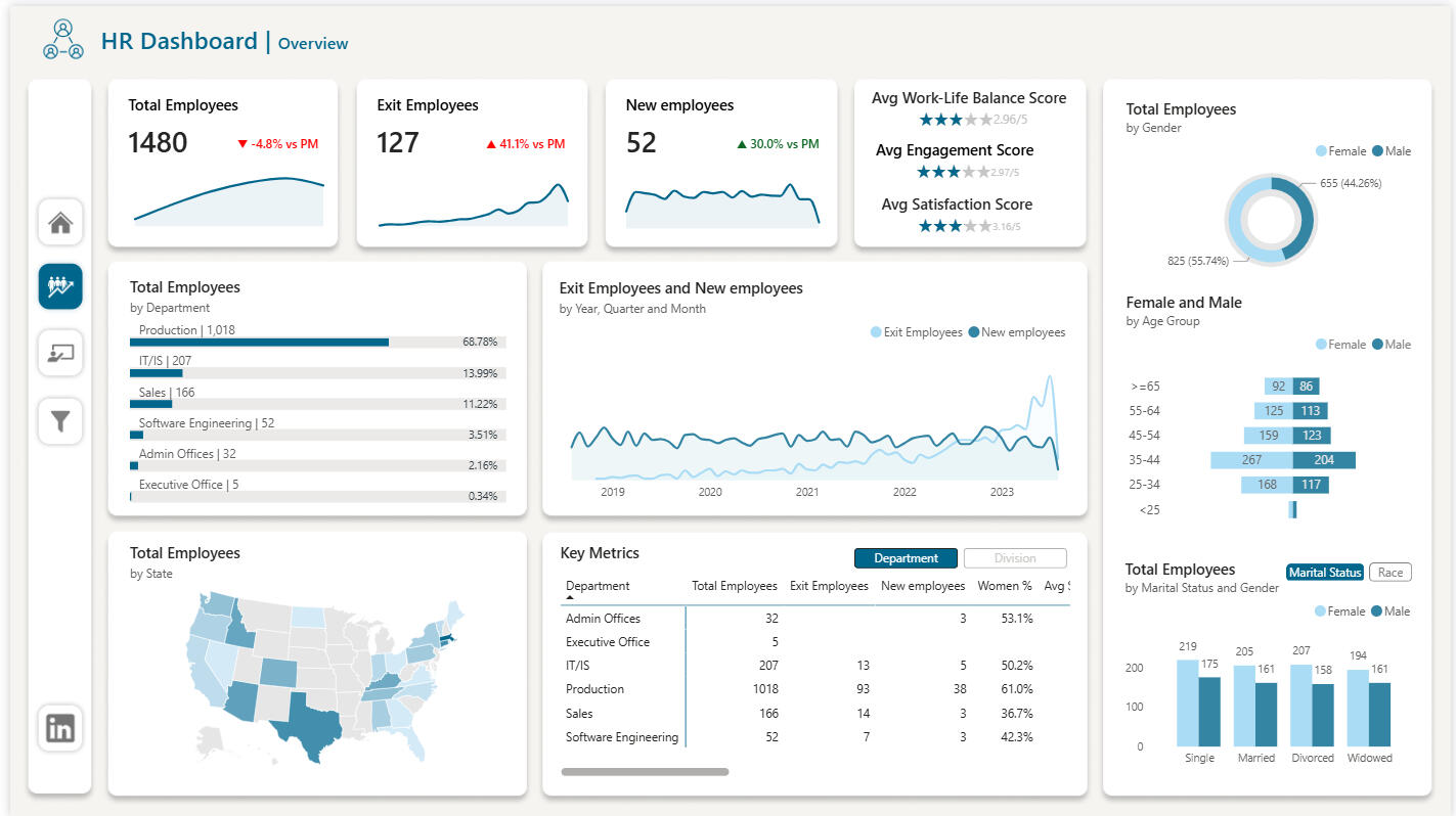 6. Created visualizations combining KPI cards, bar charts, and detailed demographic breakdownsHere are my key takeaways: